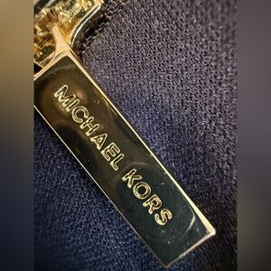 Michael Kors navy blue pencil skirt gold zippers retro 80s stretchy size 2 NWOT