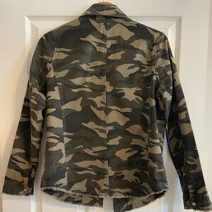 Super cute camo utility jacket with unique patch and embellishment details that make it stand out! Features embroidered stars, heart patch, crown detail, ribbon accent, and decorative buttons for that perfect mix of edgy + feminine. Frayed hem adds a trendy, lived-in vibe.