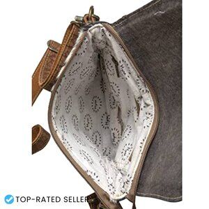 Western Cow Print Crossbody Bag Leather Strap Canvas Saddle Style Boho Chic