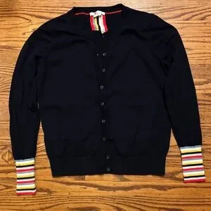 Boden Navy Cardigan Sweater with Striped Cuffs