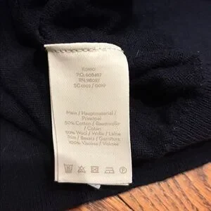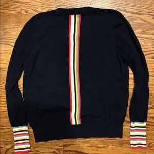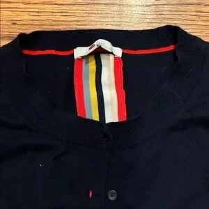 Boden size large navy cardigan with stripes on the cuffs and down the back. Part cotton, part wool. In very good condition, pet and smoke free home.