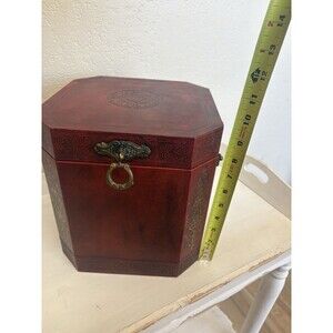 The Vintage Treasury Keepsake Box is a versatile storage solution perfect for all occasions. With an all-over Art Deco pattern and an octagonal shape, this medium-sized storage box is made of wood and metal in a rich red color. It features a latch closure, a printed finish, and comes with a handle and lid for easy access. The brand Sarried Ltd. offers this unique storage box suitable for any room in the house, adding a touch of vintage charm to your decor. Perfect for storing small collectibles or jewelry, this keepake box is a stylish and functional addition to your home.
