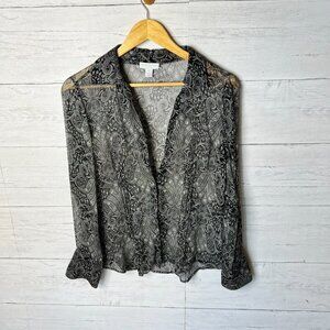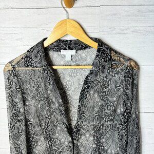 Charter Club Blouse Womens Size 8P Black Sheer Paisley Floral 100% Silk Goth