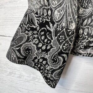 - Charter Club Blouse Womens Black Sheer Paisley Floral 100% Silk Goth