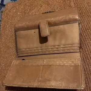 The is a sturdy well made beautiful wallet/clutch. Fossil has been a leader in leather goods for years. This item is preloved and flaws can be seen in pictures. Its price reflects that. Thanks for looking!