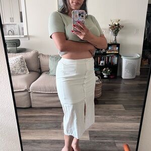 Shein White Button-Down Cotton Midi Skirt