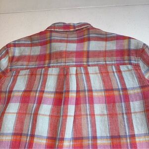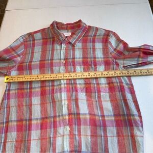 GAP Womens Boyfriend Fit 100% Linen Button Shirt Long Sleeve Pink Plaid Small