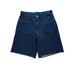 Gap Womens Dark Indigo Wide Leg Denim Shorts High Rise Soft Knit Jorts Size M