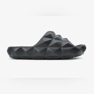 Stylish black slide sandals with a unique geometric design. Perfect for casual wear. Serving Roma - Geometric Slide Sandals. Cloud-Like Comfy Sole. Edgy & Fabulous! Style them with casual joggers and a graphic tee for a laid-back, streetwear vibe, or pair with a flowy summer dress for an unexpected contrast that elevates your casual look. For a chic poolside or beach outing, these slides are ideal, blending seamlessly with swimwear or light cover-ups, ensuring you’re always serving style, Roma style.