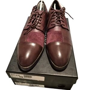 Coach Waverly patchwork oxfords in oxblood leather and suede. New and never worn. Comes with the original box and Coach footwear care booklet.