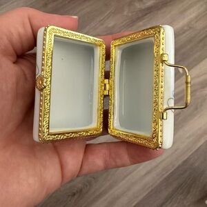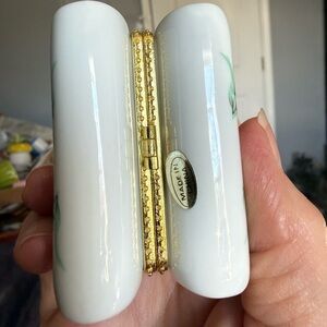 vintage Imperial porcelain shoe and trinket box with a hand-painted floral design and gold trim