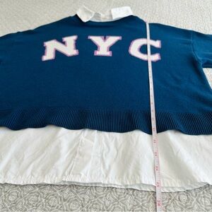 Maeve Anthropologie NYC Graphic Twofer Sweater Shirt Oversized Blue Size S
