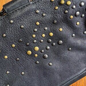 Armani Exchange clutch/wristlet. Black leather with metal studs (brass and gunmetal tone). Measurements are 9 x 4.5 x 2.5.