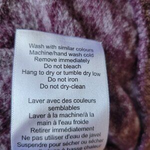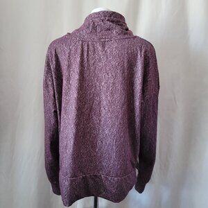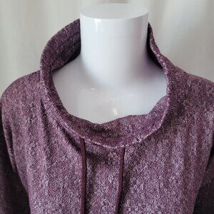 Women's Pullover sweatshirt with a printed wine color, high neck, and drawstring. Long sleeves with thumbholes at the bottom. XL.