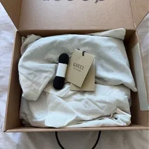 Gucci sneakers with black laces and red accents. Features 'Tennis 1977' label. Iconic high-top design.