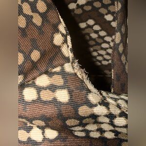 It has a frayed edge ( the fabric is still attached, this a manufacture defect) on the left sleeve armpit.