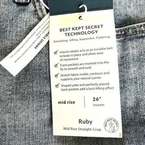 A straight leg jean that smooths and supports? That’s Ruby—with a mid rise, ease at the hip, and a relaxed leg. A Best Kept Secret waistband uses interior elastic like an invisible belt to hold your jeans in place. Then, it's finished with sleek front pockets and back pockets that lift just right.A straight leg jean that smooths and supports? That’s Ruby—with a mid rise, ease at the hip, and a relaxed leg. A Best Kept Secret waistband uses interior elastic like an invisible belt to hold your jeans in place. Then, it's finished with sleek front pockets and back pockets that lift just right.