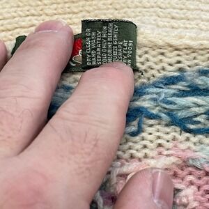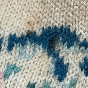This Vintage Outback Red Women's Medium Floral Cardigan Sweater is a stylish and unique addition to any wardrobe. Made from 100% wool knit, this cardigan features a V-neckline, puff sleeves, and a button accent. The floral pattern and ivory color give it a feminine and classic look, perfect for nature lovers or those with a bohemian style. With its breathable design and comfortable fit, this cardigan is a versatile piece that can be dressed up or down for any occasion.
