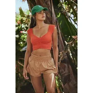 NEW FREE PEOPLE MOVEMENT BREATHE DEEPER CROP TANK BLOOD ORANGE MEDIUM