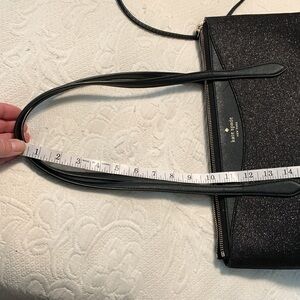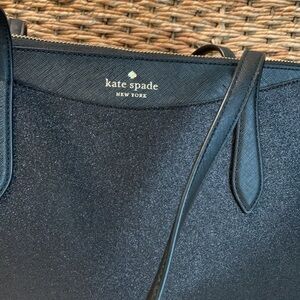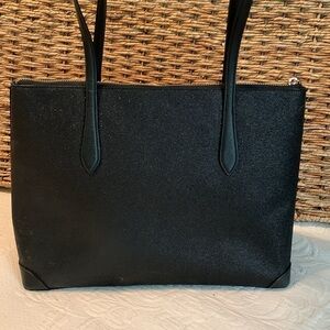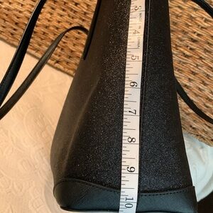 Like new - immaculate condition. This Kate Spade black tote bag combines elegance and practicality with its structured design and high-quality materials plus a little sparkle! Its spacious interior and durable construction ensure it meets both style and functionality needs. See photos for measurements and interior details.