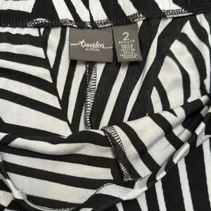 Stylish wide leg pants with bold black and grayish white pattern. Comfortable fit. Perfect for any occasion. Great summer pants. Excellent condition. 95% acetate 5% spandex. very comfortable and travel well. All measurements are approximate inseam is 27 inches.