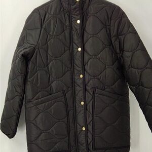 Stay cozy with this stylish black puffer jacket. Perfect for cold weather. Zip + snap closures. Excellent used condition.