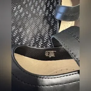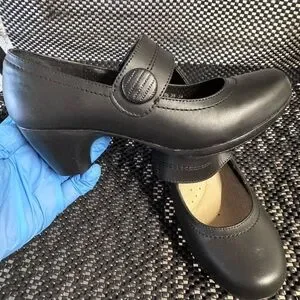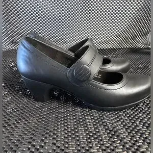 Chic black Mary Jane heels with a stylish strap. Perfect for any occasion.