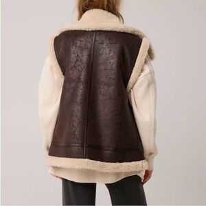 Offline By Aerie Faux Leather Sherpa Vest NWT Cozy Zip Up