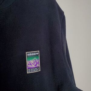 Excellent condition. Only worn once. Black. Adidas graphic logo on chest. Zip up. Fleece. Three pockets. Relaxed fit. Unisex, but this is in Men's sizing.