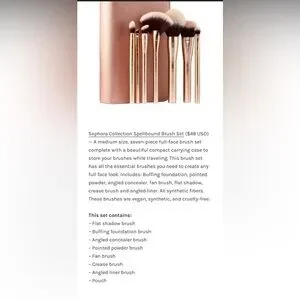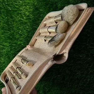 Sparkling makeup brush set with a glittery case. Includes various brush sizes for versatile use. New never used