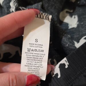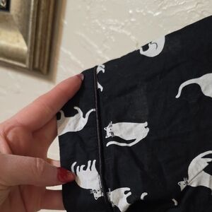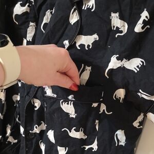 This item is a Kate Spade black and white pajama set with a playful cat print.