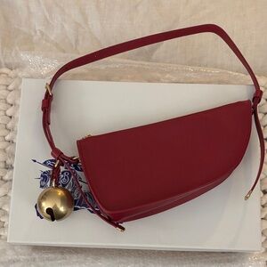 Chic red shoulder bag by Burberry. Features a unique gold charm. Perfect for elevating any look.
