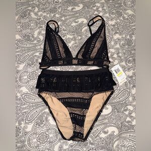NWT Ella Moss Black High Waist Crochet Bikini | Medium