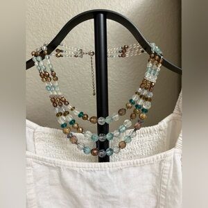 This stunning beaded necklace features a blend of brown and teal acrylic beads, perfect for adding a touch of elegance to any outfit. Ideal for both casual and formal occasions. This necklace looks so beautiful on.