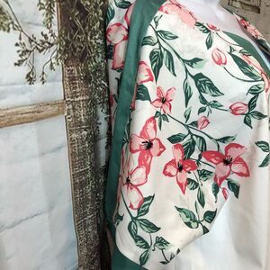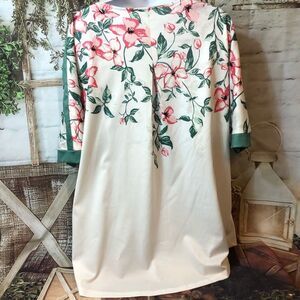 Beautiful green/pink and white Tunic top with short sleeves and silk green outline.