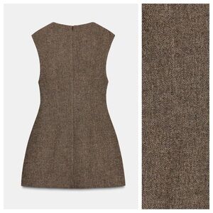 NWOT. Zara Brown Vigore Wool Blend Short Dress. Plunging V-neckline and sleeveless. Interior shorts lining. Zip closure at back. Size S. Ref. 9869/625. Pit to pit 14,5" flat, waist 14", length 30,5".