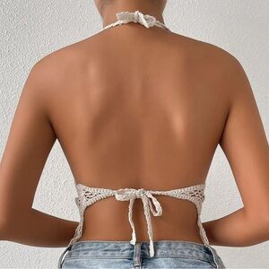Shenhe Bohemian Crochet Halter Cami Tank Top in Cream