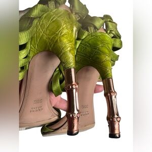 These stylish and luxurious shoes are perfect for adding a touch of elegance to any outfit, whether for a special occasion or everyday wear. The combination of the green color, bamboo high heel, and unique design elements make these Gucci heels a standout piece in any woman's shoe collection. Anti slip soles installed , please see actual pictures .