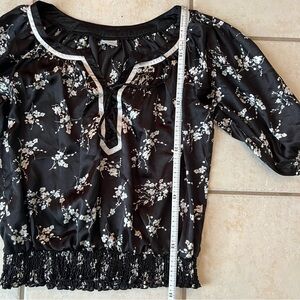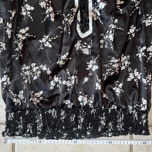 Suzy Brand Black and White Laceup Satin Peasant Blouse