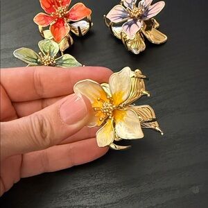 Add a touch of elegance with this floral enamel hair claw set. Featuring vibrant red, purple, green, and yellow hues, these claws are perfect for any occasion.