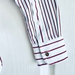 New with tags minor makeup speck should wash right out. Details: Relaxed fit. Intended to hit at the hip. Point collar. Buttoned placket. Long sleeves with buttoned barrel cuffs. Dropped shoulders. Left chest patch pocket. Back yoke. Shirttail. All cotton. Machine washable. Laying flat: pit 20 inches; pit to cuff 18.5 inches; length 26 inches; shoulder 18.5 inches.