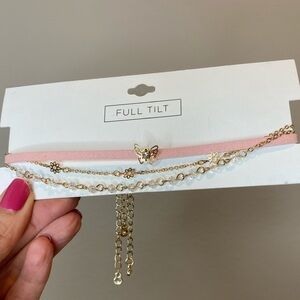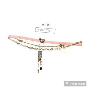 NEW Full Tilt 3 Piece Choker Necklace Set Butterfly Flower Pink Gold Whimsigoth