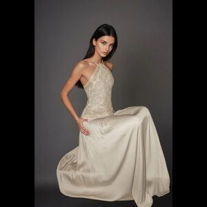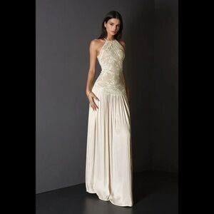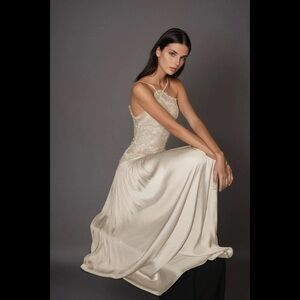 Innovare Denim - Cadwalader Lace Floral Ruch Maxi Dress - Size S