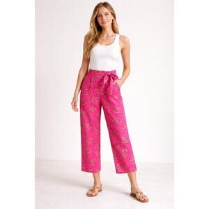 J. Crew Ratti King Crab Linen Wide Leg High Rise Pants Pink Size 8