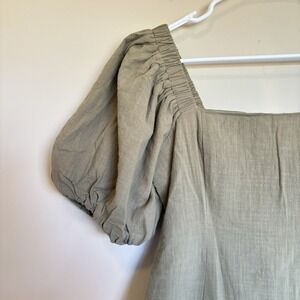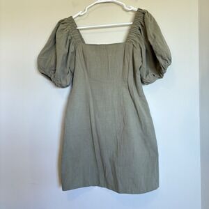 SNDYS Revolve Dress L Olive Tuscany Linen Mini Puff Sleeves Cottagecore Party