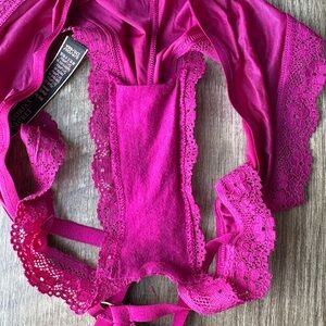 Chic magenta panties with delicate lace trim. Features a stylish cut-out design. Perfect for everyday elegance.