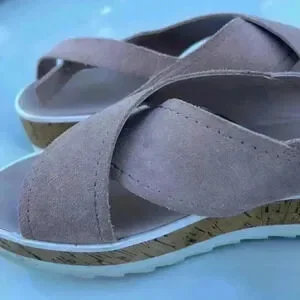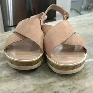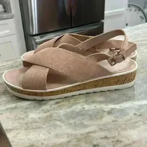 Beautiful dusty rose color, suede and cork sandal. Excellent condition with adjustable straps. Sz 9M