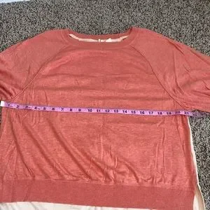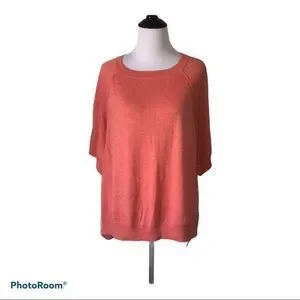 Keywords: Anthropologie, sweater, knit, top, shirt, coral, salmon, pink, cream, off-white, ivory, colorblock, raglan, boat neck, short sleeve, relaxed fit, boxy, spring, summer, fall, chic, modern, casual, preppy.