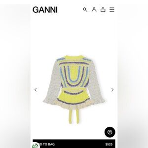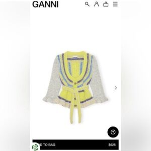 Ganni novelty crochet cardigan with ruffle trim and a self-tie belt