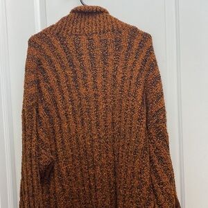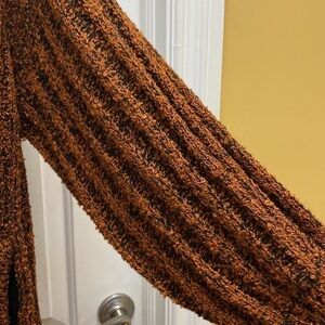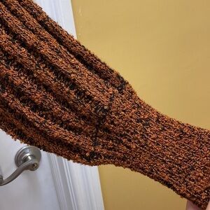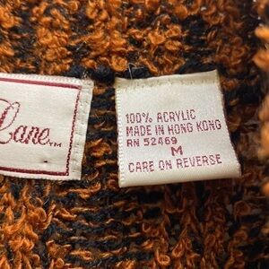 Cool vintage 80s 90s bohemian vibe Penbrooke Lane acrylic chunky knit oversized long open front sweater coat. Sweater has ribbed loop knit design with orange gold and black tones 100% acrylic. Made in Hong Kong.Tag size Medium. Please see actual measurements below to ensure a good fit. Good pre-owned vintage condition. No holes, stains or odors.. Please ask any questions before purchasing.